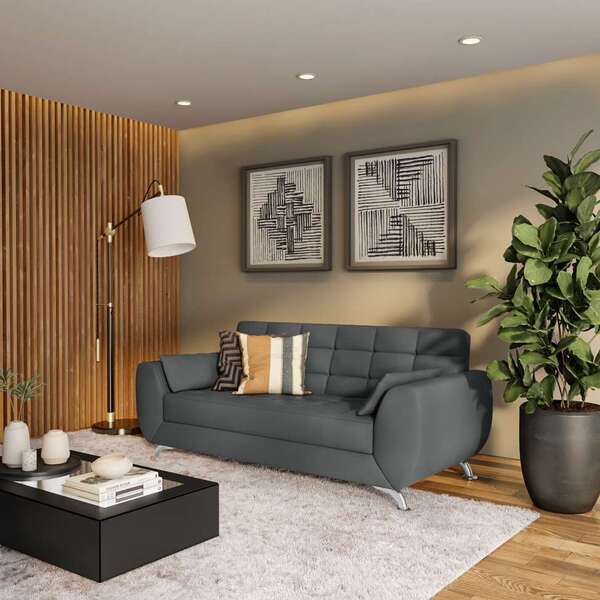 Sofá 3 Lugares Marta Suede Cinza