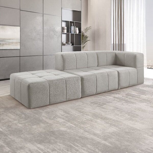 Sofá Modular 3 Lugares Bouclé Cinza