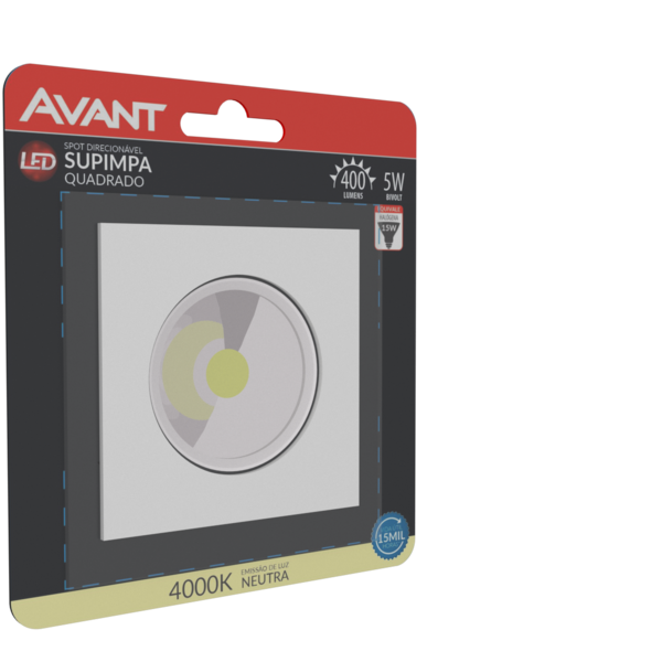 Spot led quadrado 5w branco neutro 4000k - avant o spot led é indicado para destaque em paredes, focando objetos ou texturas. Nos formatos redondo ou quadrado, possui sistema direcionável para melhor ajuste do seu projeto. - indicações de uso os modelos de spot de led são ...