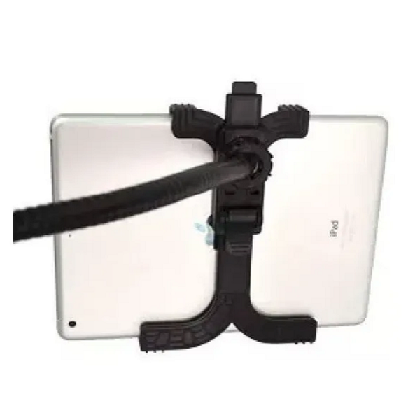 CARACTERÍSTICAS TÉCNICAS • Cor do suporte: Preto • Material suporte: Plástico ABS • Cor da Haste: Preta • Haste: Flexível • Material Haste: Aço • Comprimento da Haste: 60 cm • Ajuste de ângulo: 360° • Tipo de fixação: Morsa, aberturá máxima de 60 mm. • Trava de abertura: Sim, 7 a 10 polegadas • Compatibilidade: Todos os modelos de tablets