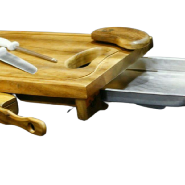Tábua para churrasco ''linha especial''. Fabricação própria, produzida com madeira de ótima qualidade e de lei. Ideal para presentear alguém especial ou deixar a sua área de lazer ainda mais elegante! Produto com design exclusivo e moderno. Medidas aproximadas: 56x39x10 cm.de acordo com a madeira utilizada na fabricação, poderá sofrer pequenas alterações na cor!o kit 4x1 é composto por:- 1 tábua- 1 faca de 8"- 1 chaira- 1 assadeira altura: 10.00 cm largura: 39.00 cm comprimento: 56.00 cm tábua churrasco.
