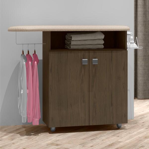 Tábua de passar roupas amanda castanho atábua de passaramandaé o móvel que vai trazer praticidade no seu dia a dia, e facilitar a sua vida. Possui 2 portas, 1 prateleira interna, suporte para o ferro, suporte para cabides e 4 pés. Feita 100% em mdp. Informações do produto: al...