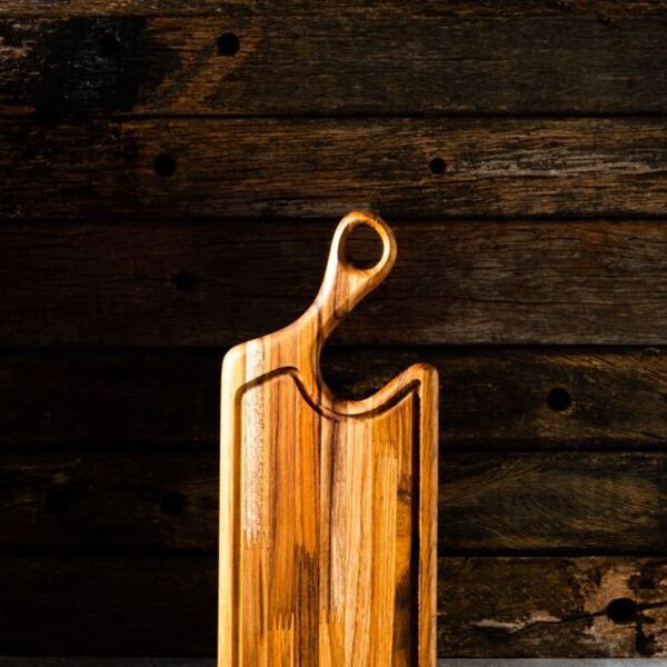 Tábua o'ahu média dimensões gerais: - comprimento: 32cm - largura: 14cm - espessura: 2 2cm - material: madeira teca dimensões área útil (espaço livre para utilização) - comprimento 25cm - largura 11cm