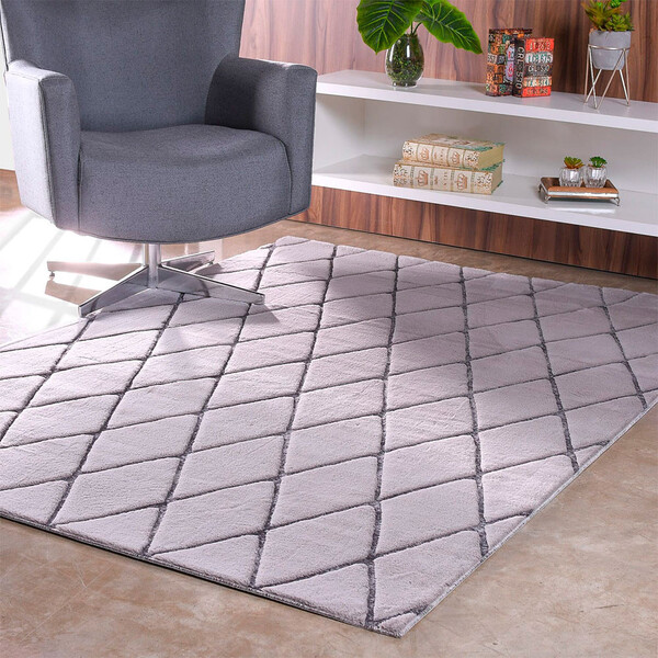 Tapete para sala com toque pele de coelho, superficie 100 poliester com base de 70 poliester e 30 algodão. 360g/metros quadrado - 1cm de altura.
