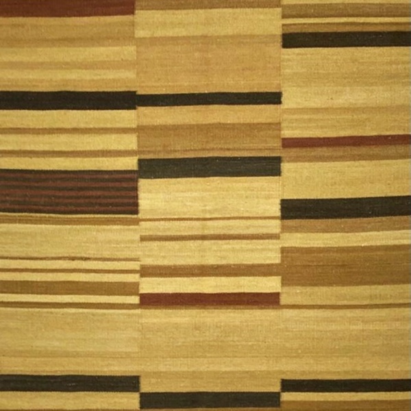 Ficha técnica acabamento da borda : dobrado e colado ambiente : sala, quarto aspecto da superfície : tear, trama composição da superfície : lã cores principais : marrom espessura : fino, 5 mm estilo do desenho : listrado forma de produção : artesanal, feito à mão formato : retangular modelo : kilim natureza da superfície : natural procedência : indiano código : 029480 tamanho nominal (cm) : 150x200 medida real (cm) : 124x179