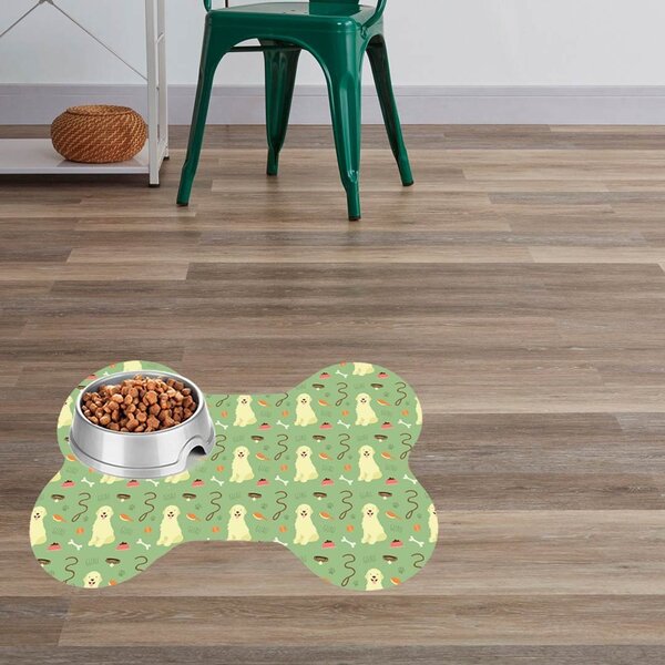 Tapete Pet com base emborrachada antiderrapante, estampa digital de alta qualidade e bordas com costura reforçada.