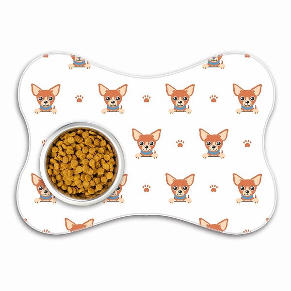 Tapete pet ossinho branco chiuaua - características gerais do produto: conteúdo da embalagem: 1 tapete pet cor: branco fabricante: fabricação própria base: emborrachada antiderrapante peso: 100g estampa: digital de alta qualidade; aplicado por termotransferên...