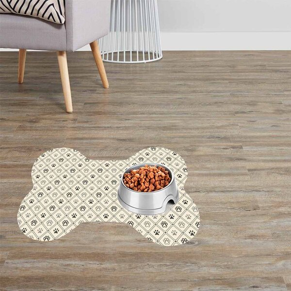 Tapete Pet com base emborrachada antiderrapante, estampa digital de alta qualidade e bordas com costura reforçada.