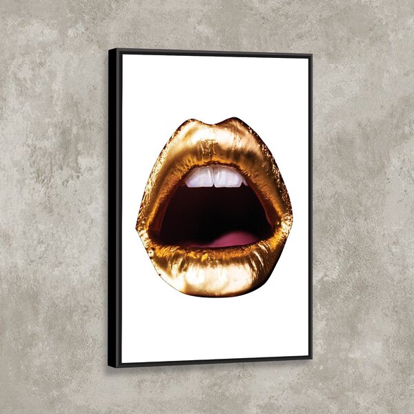Tela canvas com moldura boca gold preto - médio - características gerais do produto: material: canvas acabamento: arestas com fixação selada e grampeada conteúdo: 1 gravura emoldurada; 1 pendurador serrilhado fixado por unidade finalização: grampos de fixação, fit...
