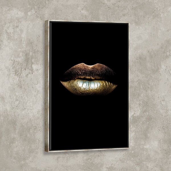 Tela Canvas Com Moldura Lábios Gold