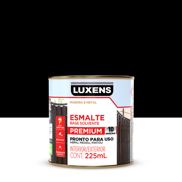Tinta Esmalte Sintético Base Solvente Acetinado Pronta para Uso Preto 225ml Luxens