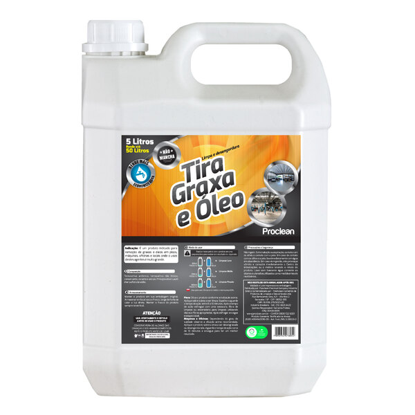 Com o tira graxa e óleo proclean, limpar manchas de óleo fica mais simples e prático. Sua formulação foi pensada para para remoção de graxas e óleos em pisos, máquinas, oficinas e locais onde o uso destes agentes é muito grande e constante.