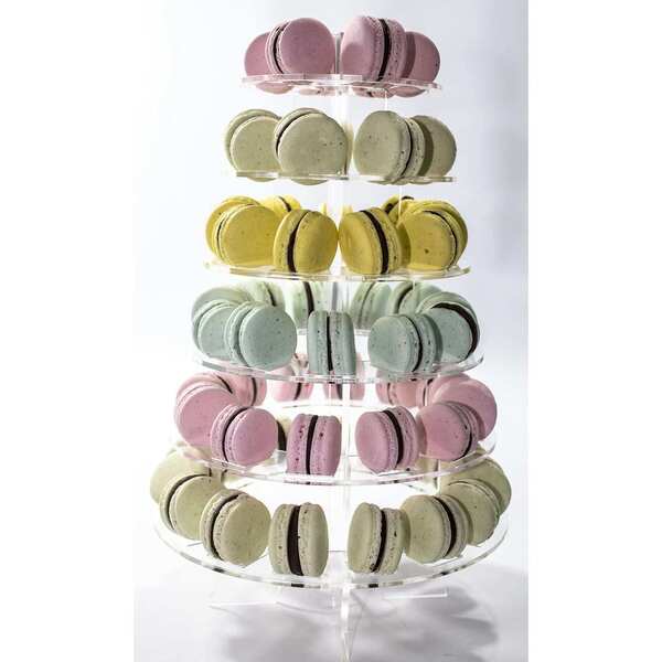 Torre 60 macarons - centauri acrílicos torre desmontável muito prática e funcional possui 6 níveis com diferentes diâmetros capacidade total para 60 macarons perfeita para decorar mesas de aniversários e casamentos