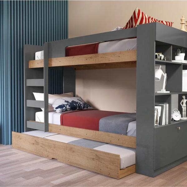 O treliche bilbao possui acabamento em pintura uv, protegida com verniz ultra resistente. Este produto tem um ótimo acabamento, proteção antiquedas, pés com 25mm de espessura, nicho para objetos de decoração e acesso exclusivo para o andar superior, e escada na parte lateral, proporcionando mais segurança, além de deixar o ambiente mais bonito e agradável. Conta com a cama auxiliar. Para este modelo devem ser utilizados os colchões padrão solteiro, com as medidas de 1,88 x 0,88m. A resistência de cada cama do beliche é de até 80kg distribuídos. Vale destacar que esta oferta é apenas do beliche, ou seja, não acompanham os colchões. Seguem as dimensões do produto: 1,500m de altura, 2,154m de comprimento e 1,038m de largura. A wow móveis não se responsabiliza pela montagem dos produtos. Na entrega não está incluso subir escadas/elevadores ou transporte por guincho em apartamentos. Eventuais despesas são de responsabilidade do comprador. Orientamos a conferência das dimensões deste produto para certificar que o mesmo passará normalmente por elevadores, escadas e corredores de sua residência. A wow móveis fica a disposição para sanar possíveis dúvidas a respeito do produto. Nossas imagens são meramente ilustrativas. Não nos responsabilizamos pela montagem e instalação dos produtos.