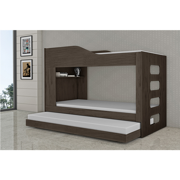 Treliche com cama auxiliar com rodízios, nicho de prateleira interna, escada interissa com chapa de mdf, barras laterais em mdf. (produto robusto com firmeza). dimensões do produto: altura: 155cm largura: 96cm profundidade: 193cm peso: 75,4kg garantia do fornecedor: 03 meses.