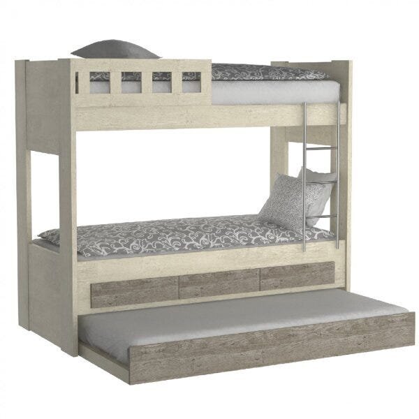 Treliche solteiro 3 gavetas . A treliche 3 gavetas é ideal para colchões de solteiro de 88 cm. É produzida 100% em mdf, com acabamento uv fosco/texturizado o que garante brilho e proteção em toda a superfície do móvel. Sua estrutura principal é de 18mm com cabeceira em 25mm. Ideal para otimizar o espaço do seu quarto. Estilo: moderno peso (kg): 148 garantia: 06 meses altura (cm): 175 acabamento: pintura uv largura (cm): 98 possui pés: não possui portas: não comprimento (cm): 195 possui gavetas: sim possui rodízio: não suporta até (kg): 300 tipo de estrado: removível escala de brilho: fosco gaveta com chave: não serviço montagem: 114259443 acompanha colchão: não origem do produto: nacional ambiente principal: quarto material da escada: metal material da gaveta: mdf possui prateleiras: não tamanho do colchão: solteiro material do estrado: pinus e eucalipto sapatas niveladoras: não acabamento da gaveta: pintura texturizada uv peso máximo por gaveta: 10 acompanha cama auxiliar: sim cama auxiliar com rodízio: sim possui trava de segurança: não tipo de puxador da gaveta: embutido escala de brilho da gaveta: fosco tamanho do colchão (lxc): 088×188 solteiro padrão tipo de corrediça da gaveta: metálica telescópica altura do estrado até o chão: 137.3 cama auxiliar suporta até (kg): 100 peso suportado por cada cama: 100 cama auxiliar acompanha colchão: não altura do estrado superior até o chão: 137.3 permite a utilização de cama auxiliar: não fabricante: foscarini marca: foscarini cor: marfim areia/demolição itens inclusos: 1 treliche e 1 manual de montagem. Cor predominante: bege quantidade de gavetas: 03 gavetas tamanho do colchão indicado (l x c): 88cm x 188cm tamanho do colchão indicado cama auxiliar (l x c): 88 x 188 (cm)