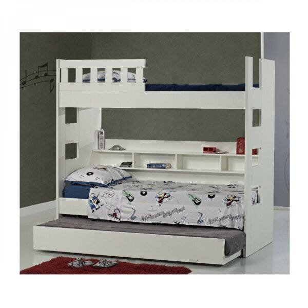 Treliche solteiro 3 nichos foscarini foscarini. A treliche 3 nichos e grade de proteção foscarini é ideal para colchões de solteiro de 88 cm. É produzida 100% em mdf, com acabamento bp que é resistente a riscos, não descasca, não mancha e também tem uma resistência maior à umidade. Seu sistema de montagem é realizado através de parafusos, minifix e cavilhas. Sua estrutura principal é de 18mm com cabeceira em 25mm.  ideal para otimizar o espaço do seu quarto. Aproveite! Estilo: moderno peso (kg): 190 garantia: 06 meses altura (cm): 182 acabamento: bp largura (cm): 195 peso bruto (kg): 200 possui pés: não tipo de cama: treliche possui portas: não comprimento (cm): 97 possui gavetas: não possui rodízio: não suporta até (kg): 300 tamanho da cama: solteiro tipo de estrado: removível escala de brilho: fosco gaveta com chave: não serviço montagem: 114259443 acompanha colchão: não ambiente principal: quarto material da escada: mdf material principal: mdf possui prateleiras: não tamanho do colchão: solteiro material do estrado: mdf sapatas niveladoras: não acabamento da gaveta: bp acompanha cama auxiliar: sim cama auxiliar com rodízio: sim possui trava de segurança: não altura do estrado até o chão: 145 cama auxiliar suporta até (kg): 100 peso suportado por cada cama: 100 cama auxiliar acompanha colchão: não altura do estrado superior até o chão: 145 permite a utilização de cama auxiliar: não fabricante: foscarini marca: foscarini cor do produto: foscarini itens inclusos: 1 treliche e 1 manual de montagem. Cor predominante: branco tamanho do produto: solteiro