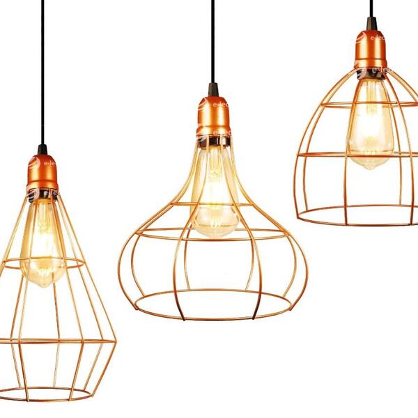 Trio conjunto pendente aramado cobre. Super indicado para decorações modernas para sala, quarto, apartamento. - dimensões: cone = 32 cm de altura x 22 cm de largura taça = 22 cm de altura x 20 cm de largura balão = 25 cm de altura x 26 cm de largura - cada pendente possui 120cm de fio - acompanham 3 canoplas de teto e os pendentes ( completos ) - não acompanha lâmpada neste kit - canoplas com 12cm de diâmetro