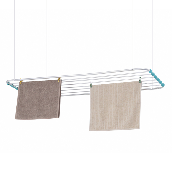 | Benefícios | Permite colocar pelas grandes como lençóis, toalhas e calças evitando o contato com o chão. Os de alumínio possui uma resistência maior a corrosão e são indicados para áreas litorâneas. Por ser de teto, não ocupa espaço do piso nem das paredes no ambiente instalado. |