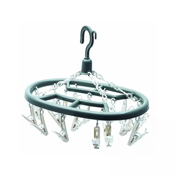 Mini varal portátil, com 18 pregadores , ideal para pendurar meias e peças íntimas. obs: cor meramente ilustrativa, vão sortidas mediante disponibilidade em estoque. peso: 0.2 kg