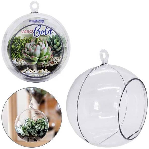 Vaso bola suspenso (extra grande) injeplastec  descrição * vaso bola em acrilico suspenso, perfeito para terrário, plantas suculentas, pequenos arranjos e decoração em geral.   características  * dimensões: extra grande - ø 15 x a. 16 cm * altura: 16 cm* largura: 15 cm ...