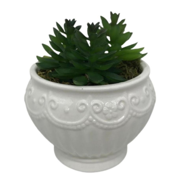 Vaso branco clássico com suculentas, decoração para qualquer ambiente, com muito estilo e bom gosto.   material: cerâmica   dimensões do vaso:   altura 8cm x diâmetro 10cm