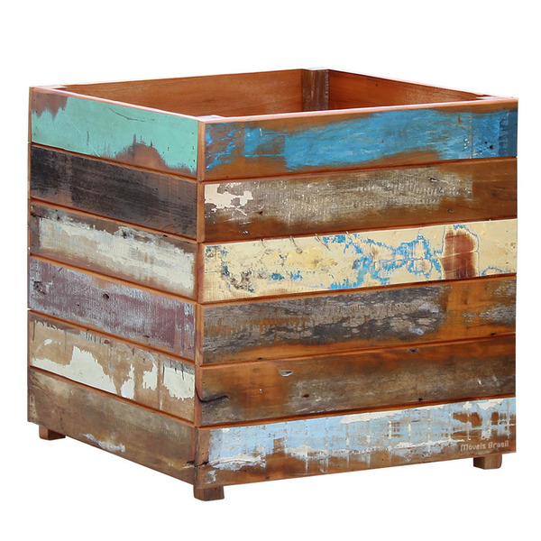 Vaso Cachepot 50x50cm Madeira Maciça Pátina