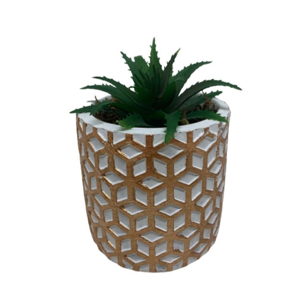 Vaso de cimento com estampa geométrica, cor rose gold. Acompanha a suculenta artificial. Tamanho 7x7cm lindo vaso, super moderninho.