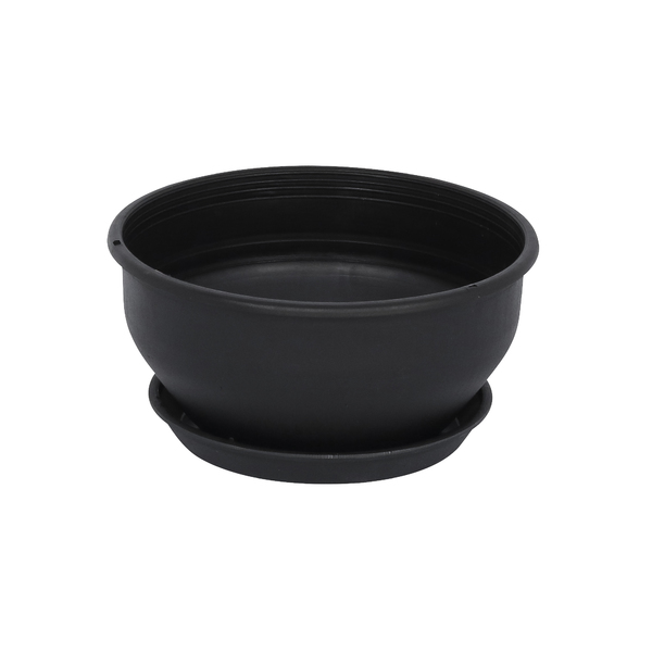 Vaso de Planta Cuia Pequeno em Plástico 12x24cm com Prato Preto Roma Desli