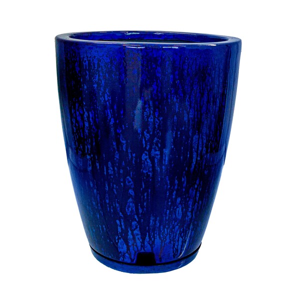 Vaso de Planta Grande em Fibra de Vidro 44x29cm com Prato Azul Amsterdã Floridis