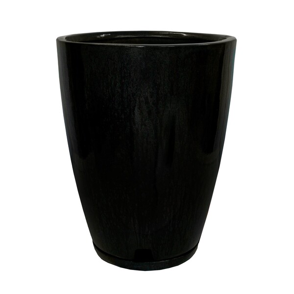Vaso de Planta Grande em Fibra de Vidro 44x29cm com Prato Cinza Amsterdã Floridis