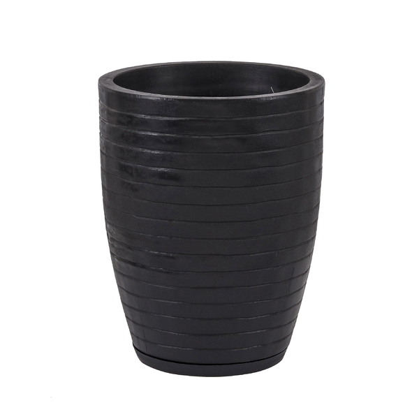 Vaso de Planta Grande em Plástico 49x39cm com Prato Preto Relevo Vasart