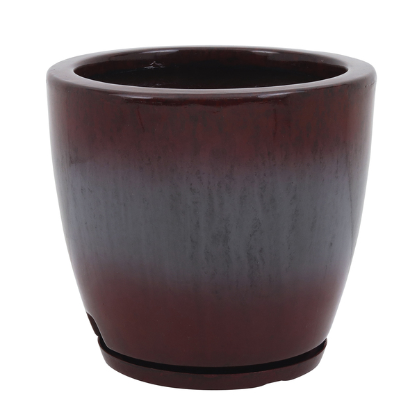Vaso de Planta Médio em Fibra de Vidro 28x27cm com Prato Vermelho Amsterdã Floridis