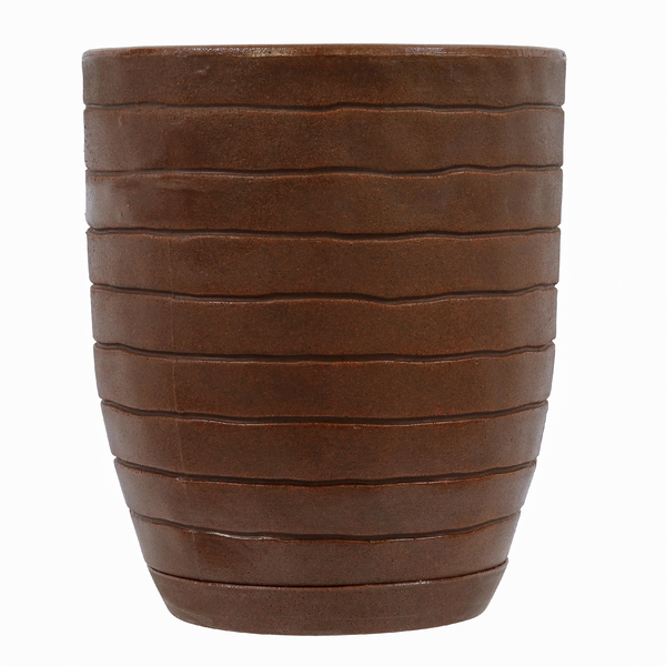 Vaso de Planta Médio em Plástico 28x24cm com Prato Marrom Relevo Vasart