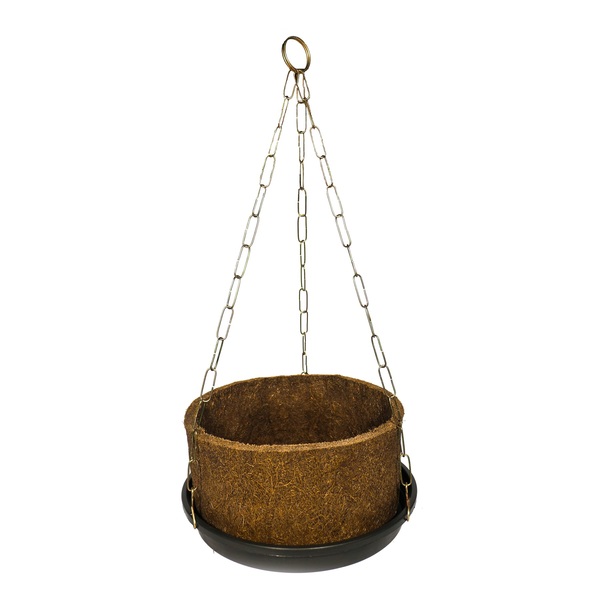 Vaso de Planta Pendente Pequeno em Fibra Natural 12x24cm com Prato Marrom West Garden Coquim