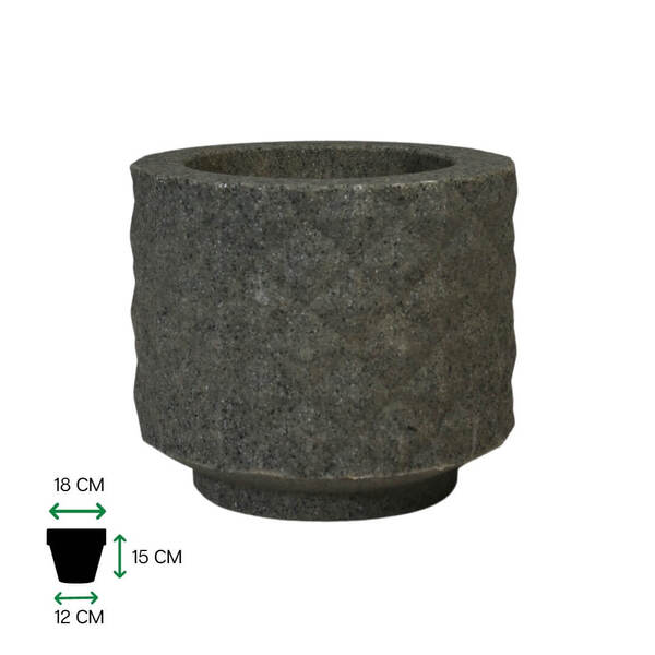 Recôncavo 30 mini. Tamanho aproximado: 15cm de altura, 12cm de base, 13cm de boca e 18cm de diâmetro. Não possui furo. Material: polietileno (plástico) 100% reciclado.os vasos possuem proteção uv e garantia de 5 anos.as cores podem sofrer variação de tom devido a matéria-prima ser polietileno 100% reciclado.