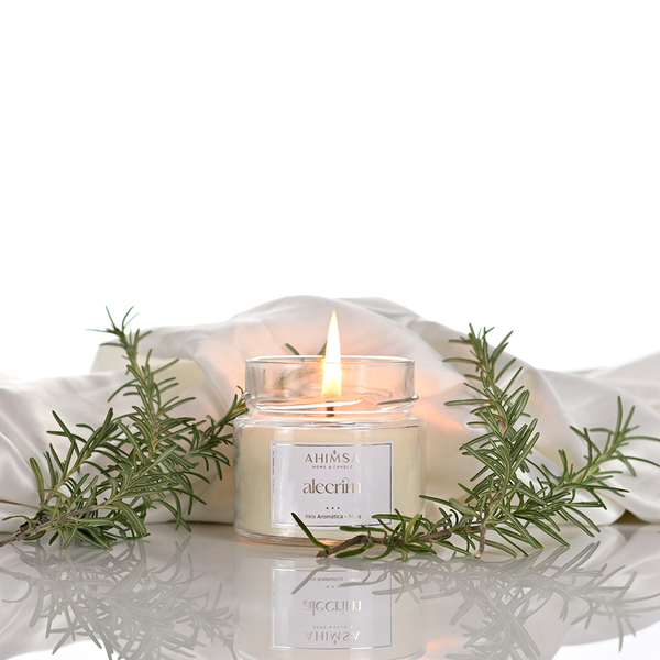 O aroma tradicional delicioso de alecrim, que auxilia bastante na concentração e no foco. ótimo para sentir enquanto estuda ou trabalha.família olfativa: cítrica aromáticanotas de saída: limão, alecrim, lavanda, eucaliptonotas de corpo: jasmim, sândalo, lírio do valenotas de fundo: musk, ambergris, madeiras de pinho. Composição:blend de ceras vegetais (coco, palma e arroz), 100% livre de parafina;fragrâncias premium com excelente desempenho, livre de ftalatos;pavio 100% algodão. Vela aromática de 140g em pote de vidro reutilizável. Duração da queima: aproximadamente 30 horas, no entanto não é recomendado deixá-la acesa por mais de 3 horas consectivas. Após 3 horas, apague, apare o pavio e então reacenda se desejar.o aroma começa a ser liberado quando acende-se a vela, no entanto seu desempenho total só acontece após a cera derreter até a borda do recipiente, formando uma "piscina" de cera derretida.   não deixe sua vela acesa sem supervisão;  não queime uma vela em cima ou perto de algo que possa  pegar fogo ou de produtos inflamáveis;  mantenha velas acesas fora do alcance de crianças e animais de estimação;  sempre queime velas em uma superfície estável e resistente ao calor;  mantenha velas acesas longe de correntes de ar;  nunca apague velas com água, use um abafador. Produto 100% artesanal, feito com muito cuidado um à um. Todo produto desenvolvido de forma artesanal é sempre muito especial. Cada ítem leva também, além dos elementos materiais como ceras e aromas, toda a energia criativa e carinhosa do artesão, direcionada especialmente para você!