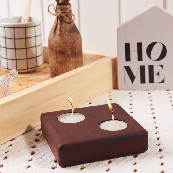 As velas são itens muito usados na decoração. Elas deixam um clima aconchegante no ambiente. você pode usar na decoração da sua casa ou presentear alguém que você ame. este nosso modelo de vela decorativa é feito com madeira de lei e acabamento final com óleo mineral.    o produto acompanha duas velas (sem cheiro) e proteção de alumínio, que podem ser substituídas após o uso.    dimensões (c x l x a): 12cm x 12cm x 3cm   características: produzido com madeira de lei cor: imbuia instruções para conservação: limpar com pano seco ou úmido     para garantir a durabilidade da peça nunca use produtos abrasivos e não deixe exposto à luz direta do sol.   observações: a tonalidade e os veios da madeira podem sofrer pequenas alterações de acordo com o lote utilizado.