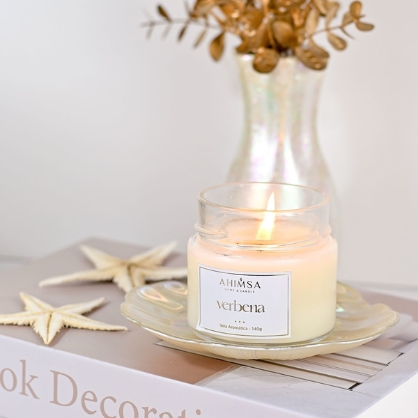 A refrescância e a delicadeza da verbena trás uma fragância elegante e leve, perfeita para relaxar. Família olfativa: herbal / floral notas de topo: limão, laranja, verbena;notas de coração: jasmim;notas de fundo: cedro, sândalo, âmbar. Composição:blend de ceras vegetais (coco, palma e arroz), 100% livre de parafina;fragrâncias premium com excelente desempenho, livre de ftalatos;pavio 100% algodão. Vela aromática de 140g em pote de vidro reutilizável. Duração da queima: aproximadamente 30 horas, no entanto não é recomendado deixá-la acesa por mais de 3 horas consectivas. Após 3 horas, apague, apare o pavio e então reacenda se desejar.o aroma começa a ser liberado quando acende-se a vela, no entanto seu desempenho total só acontece após a cera derreter até a borda do recipiente, formando uma "piscina" de cera derretida.   não deixe sua vela acesa sem supervisão;  não queime uma vela em cima ou perto de algo que possa  pegar fogo ou de produtos inflamáveis;  mantenha velas acesas fora do alcance de crianças e animais de estimação;  sempre queime velas em uma superfície estável e resistente ao calor;  mantenha velas acesas longe de correntes de ar;  nunca apague velas com água, use um abafador. Produto 100% artesanal, feito com muito cuidado um à um. Todo produto desenvolvido de forma artesanal é sempre muito especial. Cada ítem leva também, além dos elementos materiais como ceras e aromas, toda a energia criativa e carinhosa do artesão, direcionada especialmente para você!