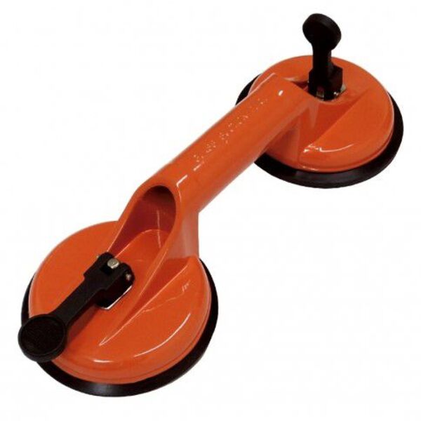Ventosa dupla de alumínio laranja Ventosa dupla de alumínio para transportar vidro, mármore, granito, etc Capacidade de carga até 100kg sendo: Vertical: 80 kgs Horizontal: 100 kgs Material: alumínio fundido Cor: laranja
