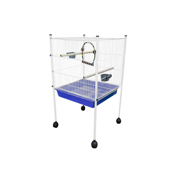 viveiro compacto versátil, ideal para ambientes pequenos; pintura epóxi atóxica; malha 15 mm; 2 poleiros; rodízios que facilitam o transporte e limpeza do ambiente; 2 comedouros em plástico; balanço natural colorido; bandejas em plástico removível; medidas do produto: c 45 l 43 a 78 cm (espaço interno 41cm).