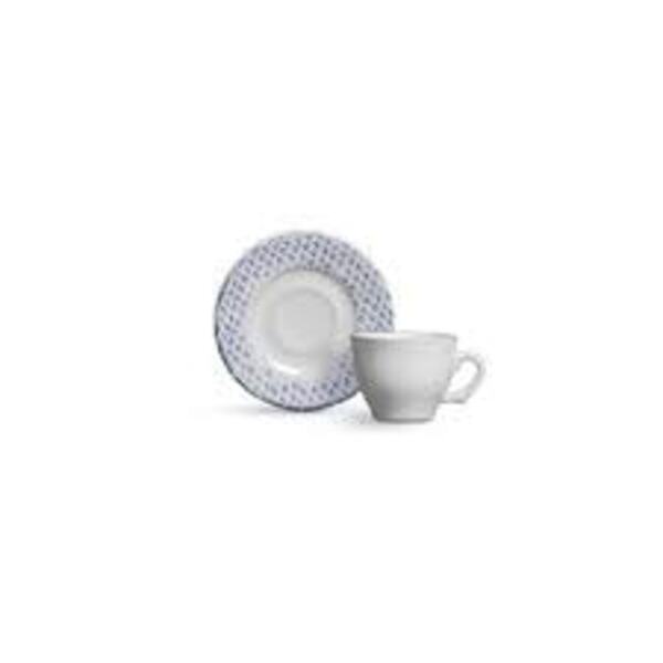 - Dimensões: - Xícara: Altura: 7cm Diâmetro: 9cm - Pires: Altura: 1,5cm Diâmetro: 15,5cm - Material: Cerâmica - Cor: Branca e contorno azul - Pode ser usada em microondas - Pode ser usada em lava louças - Não libera sustâncias tóxicas - Não colocar a peça dire...