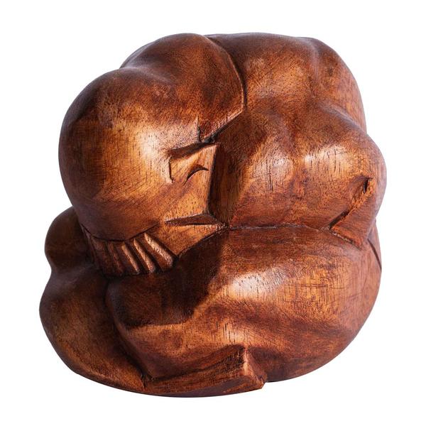 Yogui, yogi ou yogin é um termo usado para os praticantes da yoga. A palavra "yoga" vem da raiz sânscrita yuj, traduzida como "união" ou "integração" e pode ser entendida como a união com o divino ou integração do corpo, mente, e alma. Dimensões: altura 15cmx largura 13cm x profundidade 16cm. Material: Madeira suar. Origem: Indonésia.
